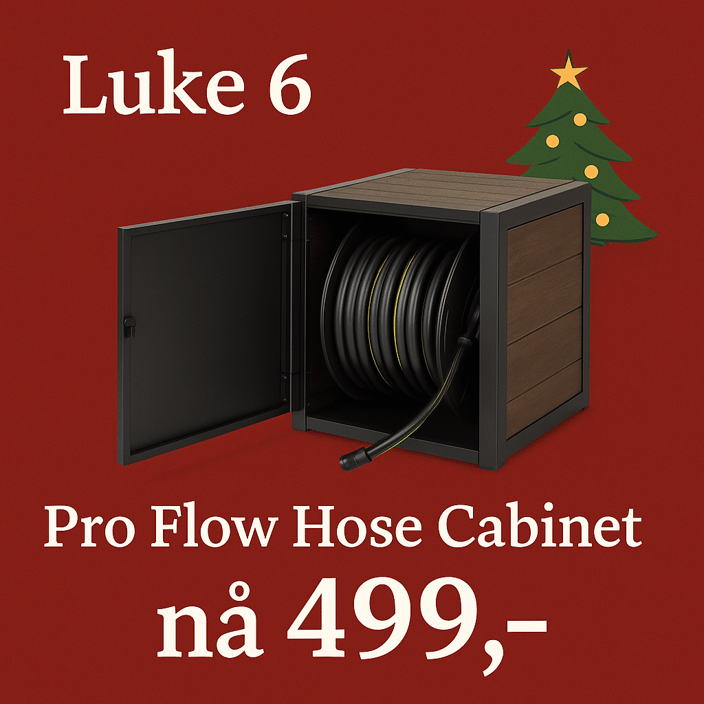 Luke 6: Pro Flow Hose Cabinet – nå 499,- 🎄🚿 Pro Flow Hose Cabinet er et stilrent slangeskap som både rydder opp og pynter på uteplassen. Den har en solid metallramme med sidepaneler i tre-look, noe som gir god slitestyrke og et mer dekorativt uttrykk enn en vanlig slangetrommel. Skapet rommer opptil ca. 30 meter (100 ft) hageslange,…